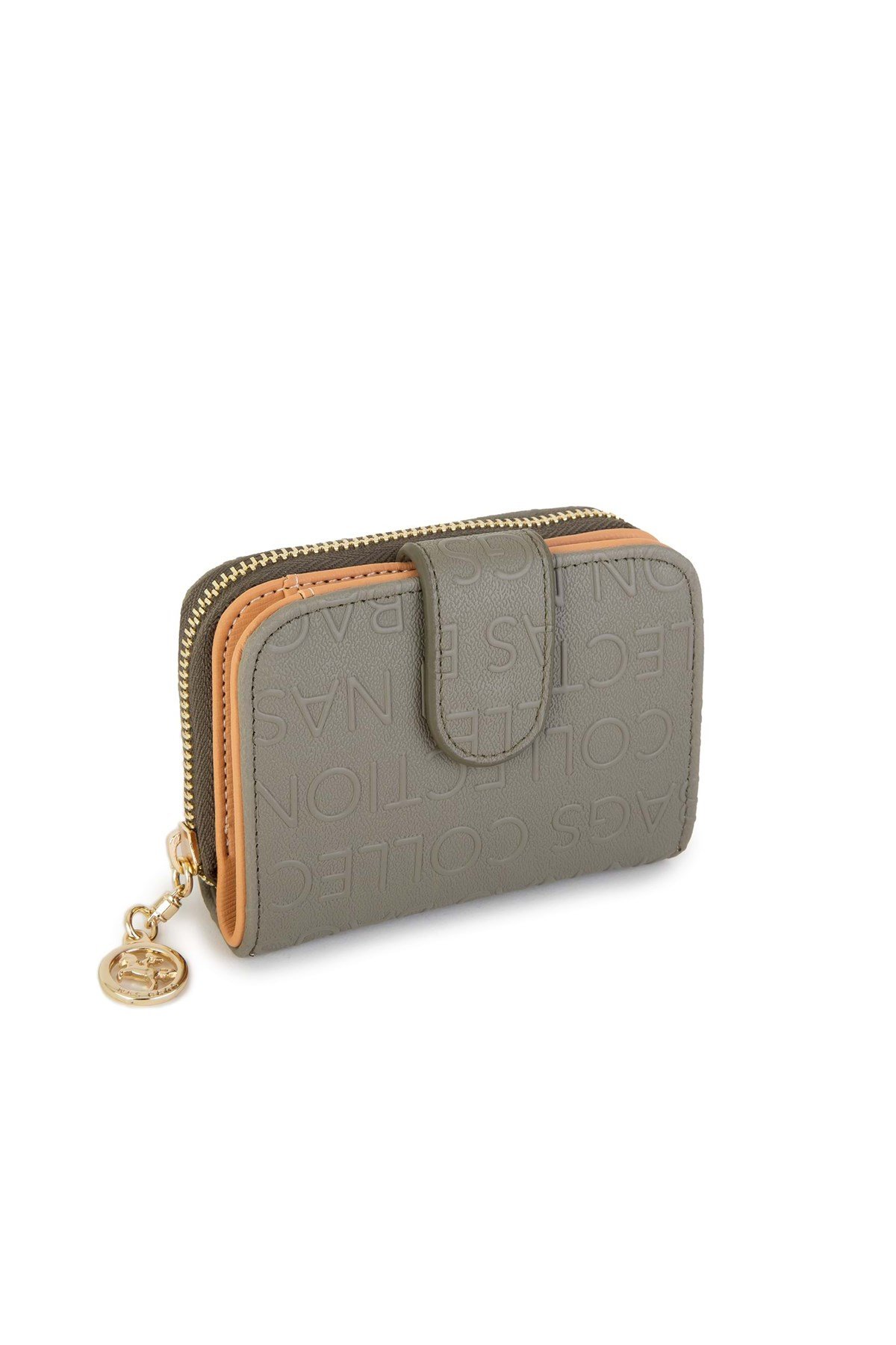 2+2 Kart Bölmeli Küçük Gofraj Baskılı Fermuarlı TRCÜZDAN001-6 Yeşil Camel