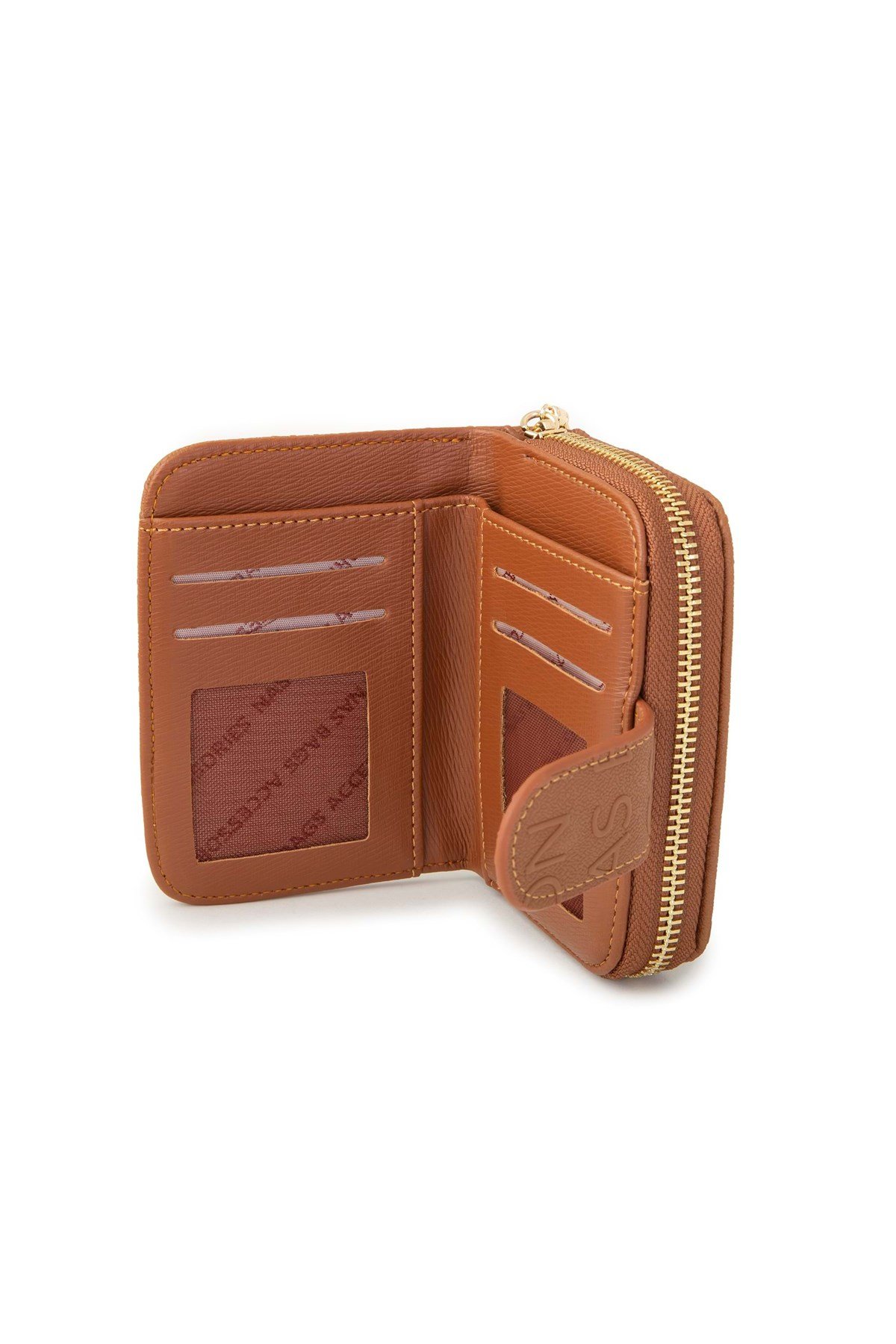 2+2 Kart Bölmeli Küçük Gofraj Baskılı Fermuarlı TRCÜZDAN001-8 Taba