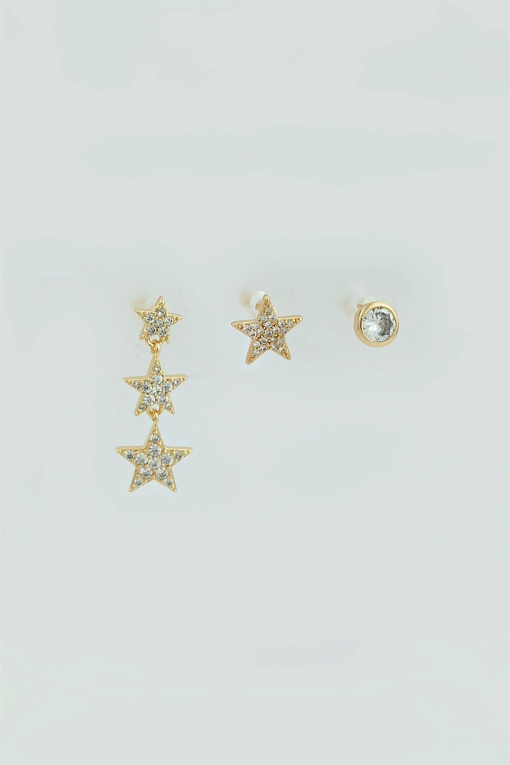 3 lü Sıralı Yıldız Küpe Kombin trKüpe34896 (TRKÜPE34896B37503-F07)