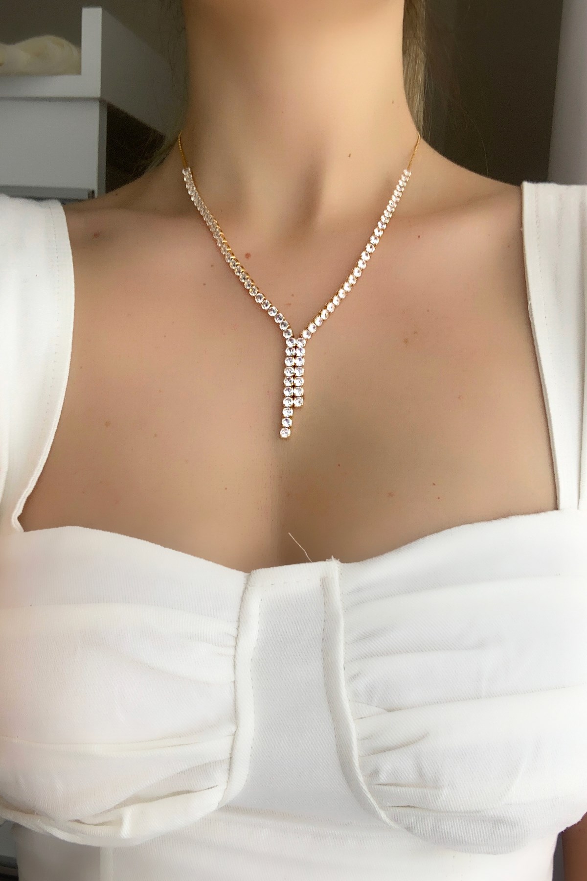 Asansörlü Zirkon Taşlı Su Yolu Kolye TrKolye5596 B31253
