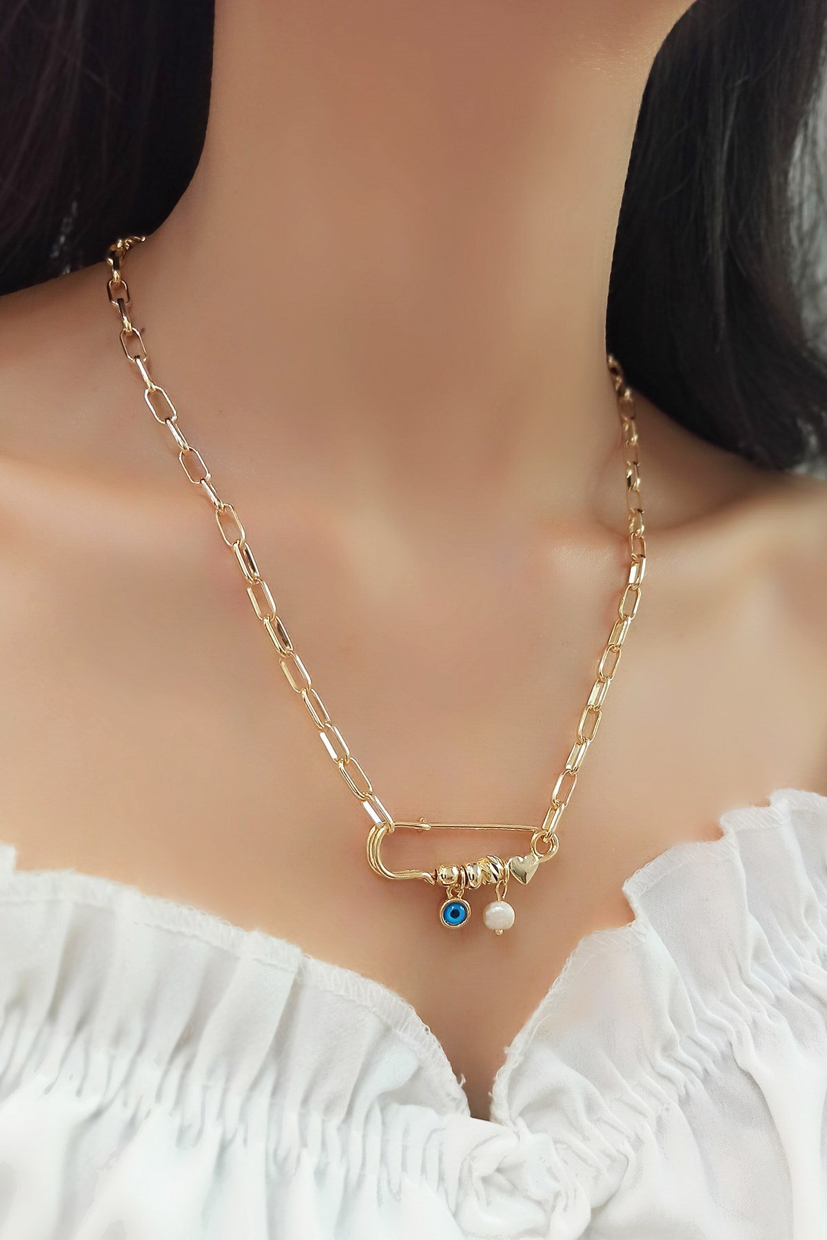 İncili Çengelli İğne Figür Kolye TrKolye5670 B34503 (TRKOLYE5670)