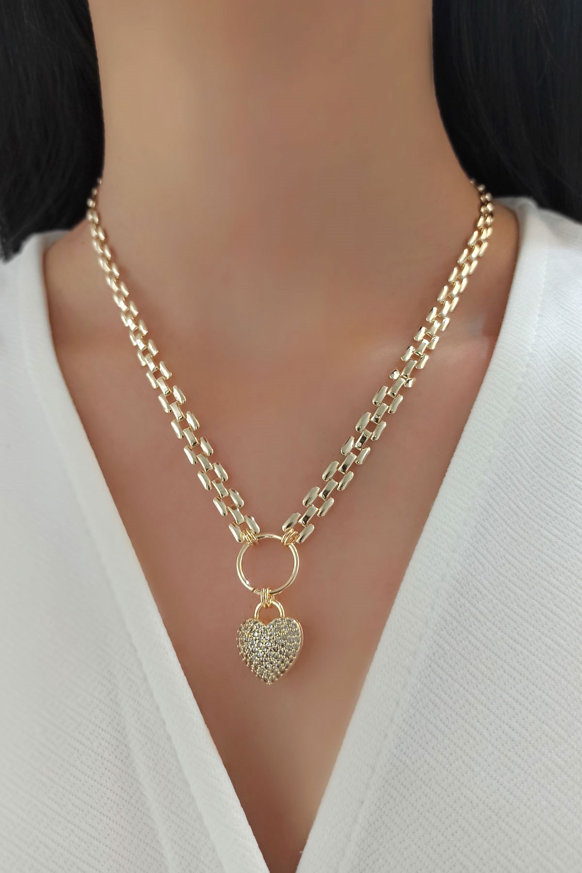 Zirkon Taş Kalp Figür Ray Zincir Kolye TrKolye5865 YB36003 (TRKOLYE5865)