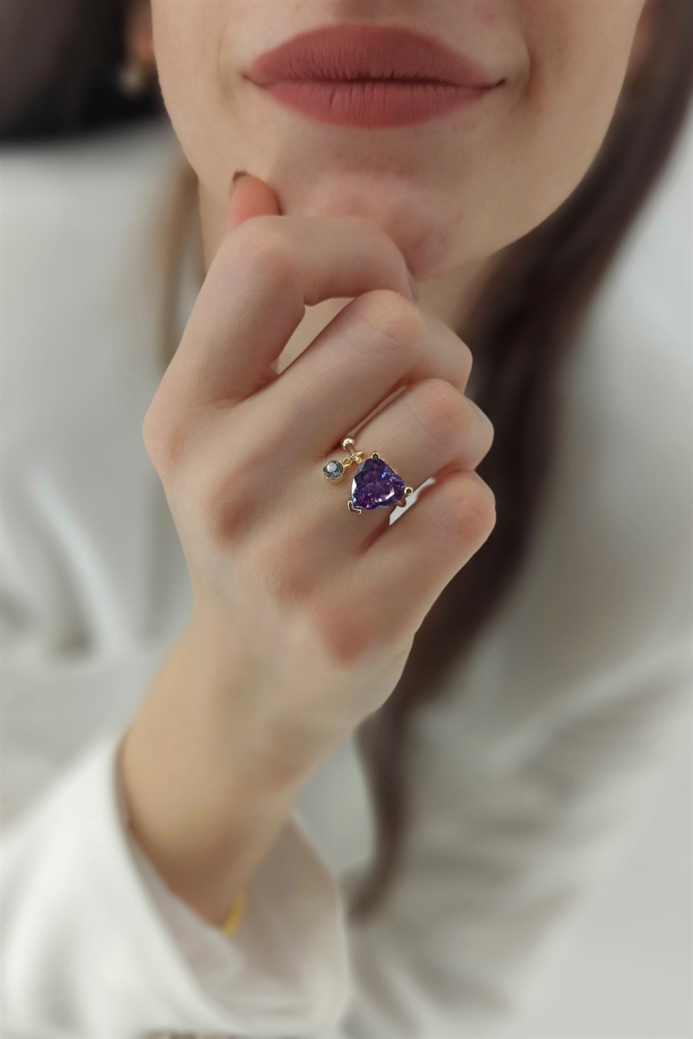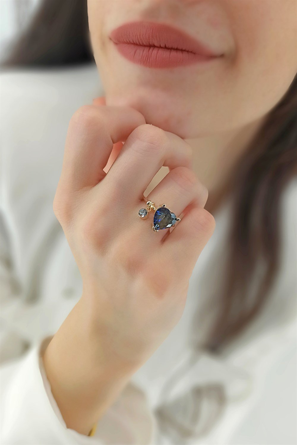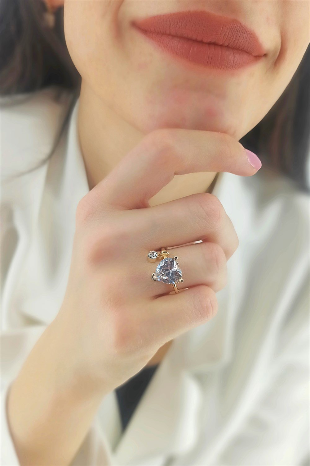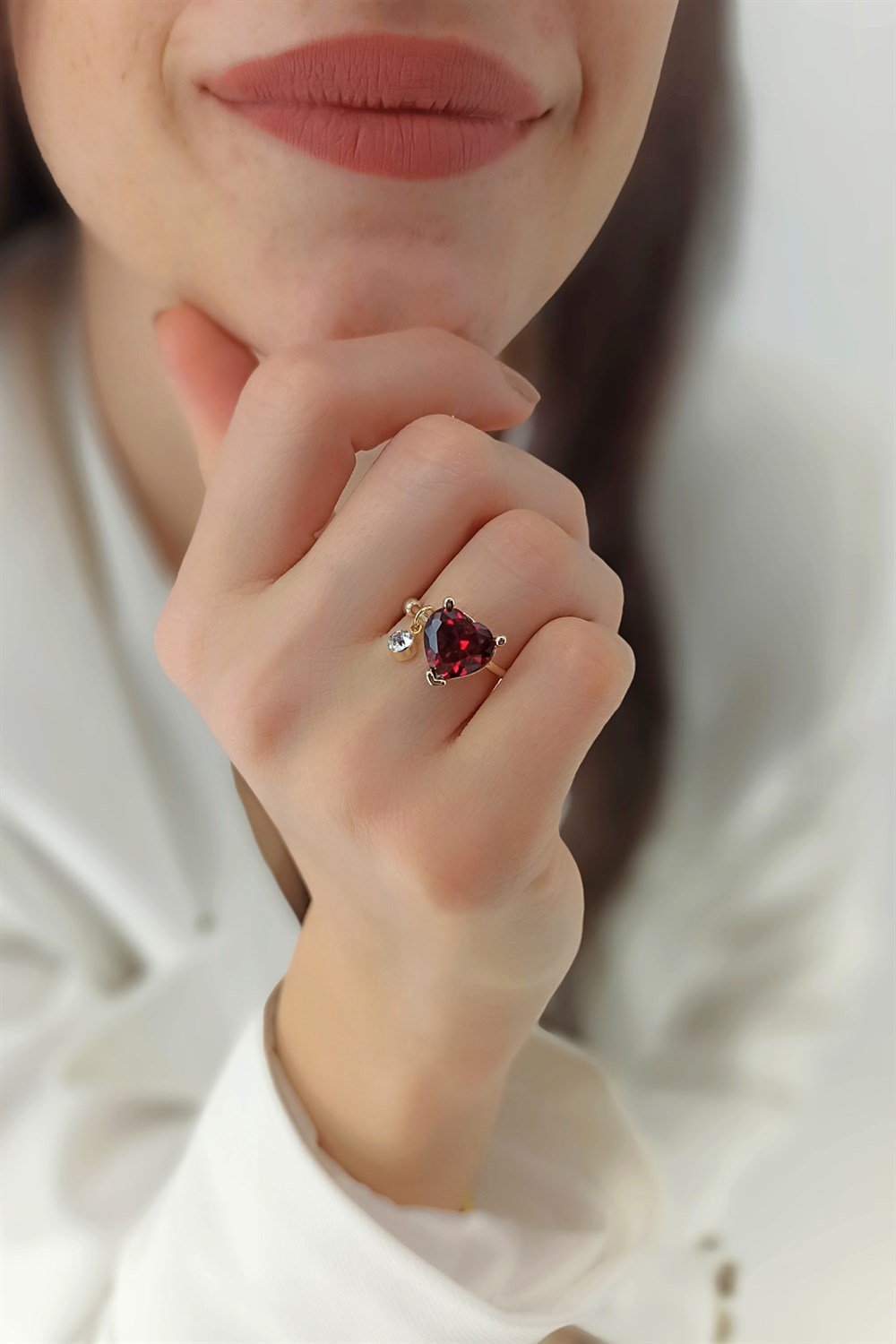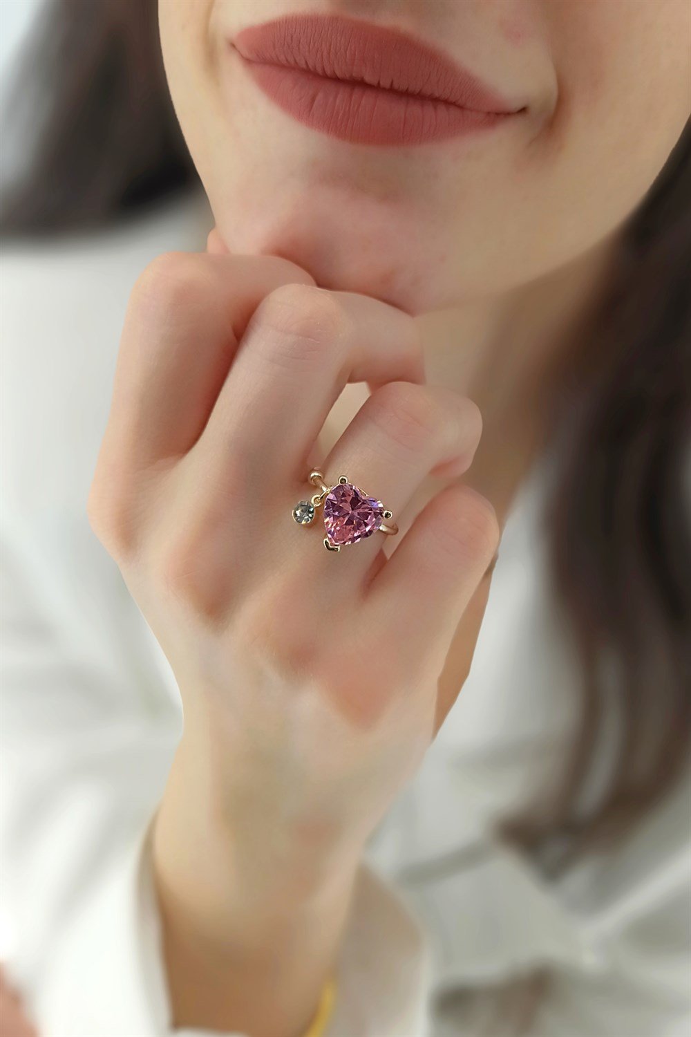 Ayarlanabilir Renkli Taş Kalp Yüzük TrYüzük1240